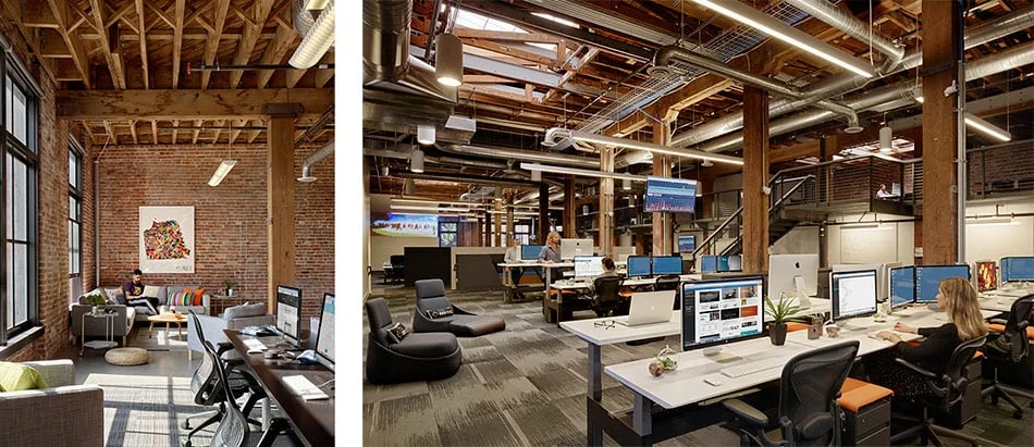 When you work, isn’t it nice to have a change of scenery once in a while? That’s the driving idea behind Huntsman Architectural Group’s design for website builder Weebly’s new headquarters at 460 Bryant in San Francisco’s South of Market. It is a workplace that has surpassed the open office concept in favor of the “office as miniature city.”