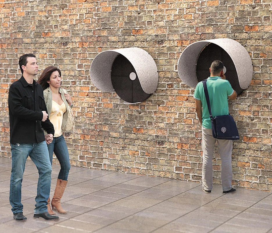 The fair features more acoustic products than ever, with the usual sound-absorbing wall panels being joined by upholstered desktop screens for computer working, spongy wall-mounted booths for phone calls and even dome-shaped baffles designed to hang just above workers' heads.