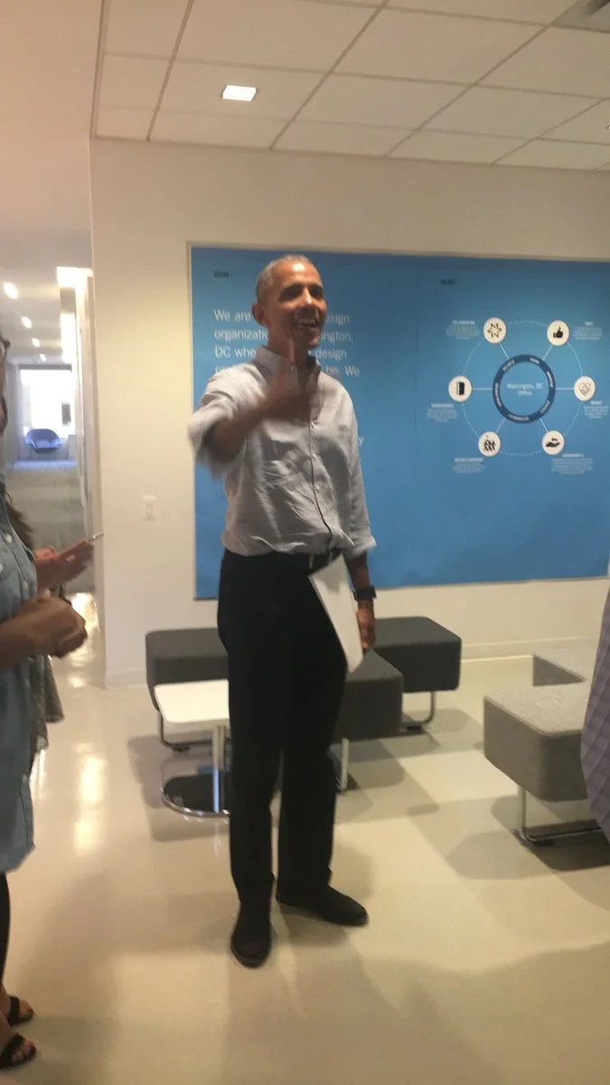 Thanks @BarackObama for swinging by @perkinswill_DC! Come back any time. (Feel free to bring Sunny and Bo!) pic.twitter.com/U8jVqwfIu5