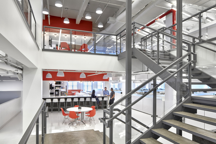 Deutsch is a fully integrated advertising, design, and digital agency. To embody Deutsch’s mission “to invent the most original and sharable work in the world,” the design centers around connectivity and collaboration to promote idea sharing and creativity. The main design feature is a large multi-platform, staircase that provides a visual connection between the two floors. Multiple seating areas and café/pantry areas surround the stair promoting impromptu meetings, social interaction and creativity throughout.