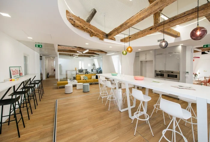 Oriented into life at work, this company wanted to rethink its premises in a more collaborative way by creating a real lively place. The premises located in Paris benefit from a 360° vision on the Saint Lazare Station, the Eiffel Tower, the Sacré Coeur and the Parisian roofs.